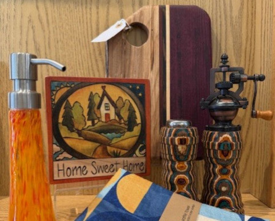 Give your kitchen an uplift with new and cheery art pieces. Cutting boards, soap dispensers, salt and pepper grinders, kitchen towels made from plastic water bottles and of course, a colorful plaque from "Sticks". All at Artsy Heart - all handcrafted and handmade in the USA.