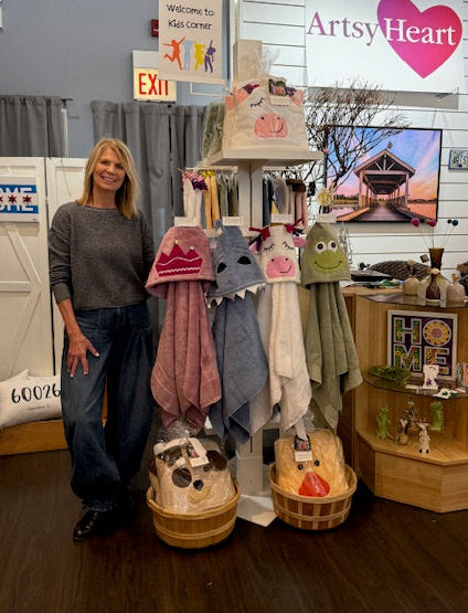 Make getting out of the bath less of a chore with super fun hooded towels made by Nancy Kloss. Warm them up and hold them close as they dry off the bubbles and get ready for bed. A perfect gift for that little one who holds your finger and has your heart. Giggles are almost guaranteed!