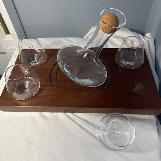 4 Whiskey Glasses & Decanter on Walnut Tray