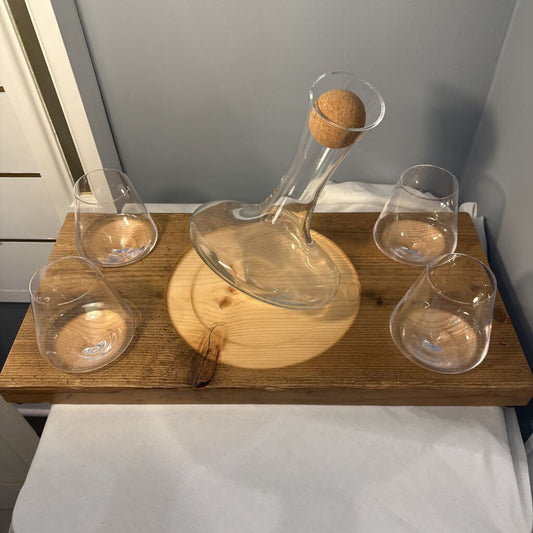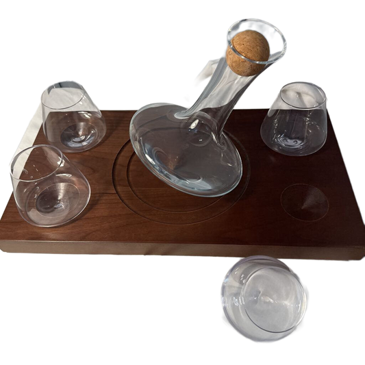 4 Whiskey Glasses & Decanter on Walnut Tray